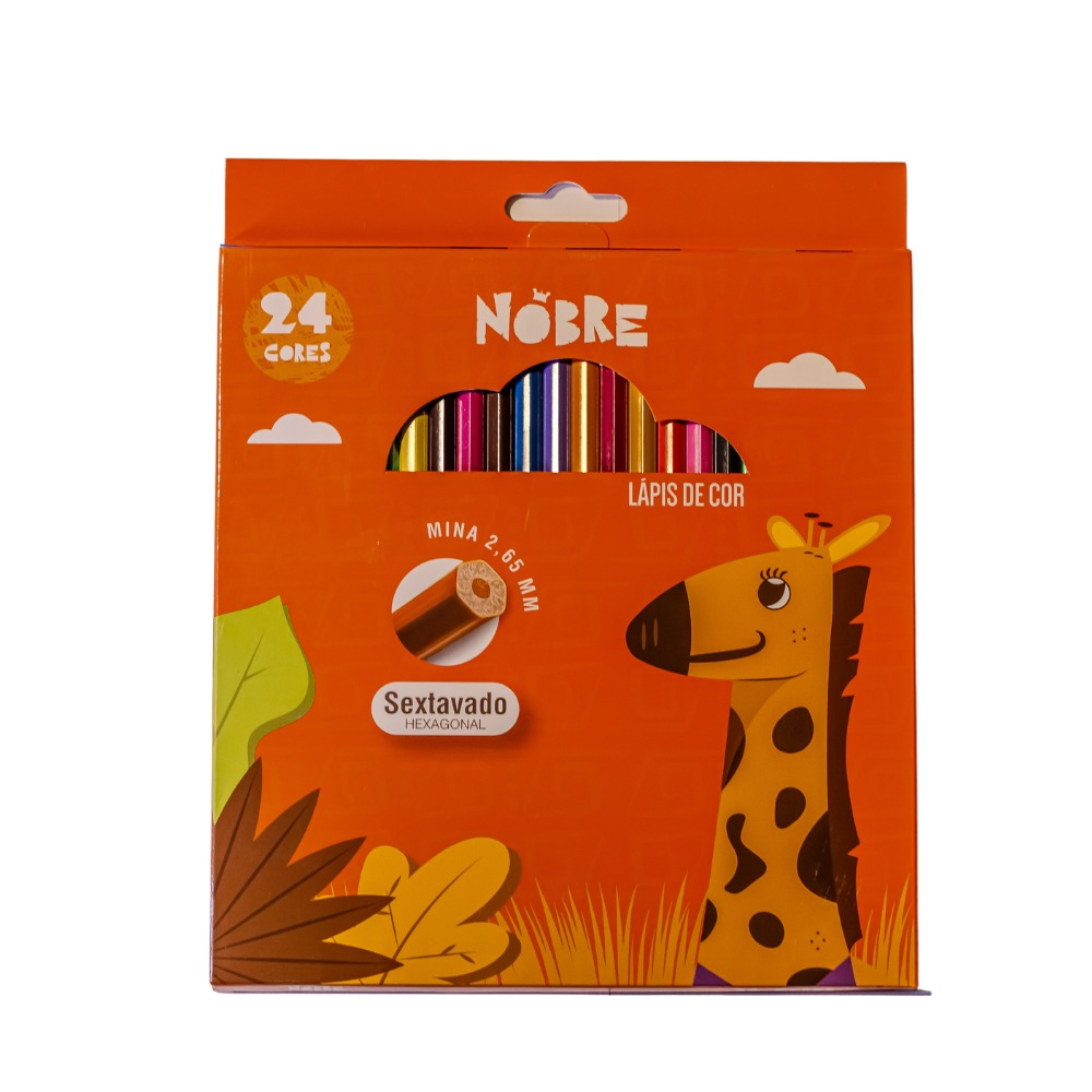 Lápis de Cor Nobre 24 Cores Sextavado Mina Macia 2,65mm 24 Cores Macio, resistente e fácil de apontar.
